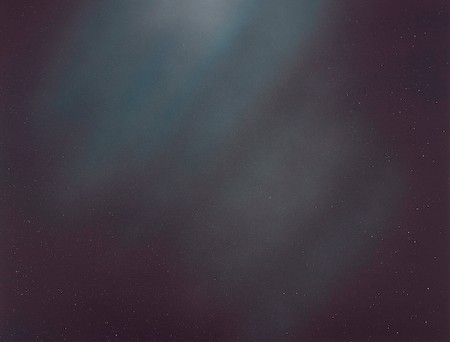 | Galerie Max Hetzler is delighted to present …beyond reach but within reason, a solo exhibition with recent paintings by Darren Almond. Underpinning Almond’s sculptures, films, photographs and paintings is an exploration of time and space as metrics of being: ways of measuring, conceptualising and understanding what it means to be here on earth. His Timescape paintings, which stretch these concerns to their furthest spatial magnitude, visualise the outer reaches of the cosmos: remote fields of coloured stars, gleaming auroras, and measureless dark empyreans. Informed by but not directly based on deep-space photography, the Timescapes figure what lies beyond – far beyond – that which Almond has suggested is the furthest marker of distance we can really comprehend, the moon. Past this, our lexicon for scale runs out and we require the digital language of numbers, as figured in Almond’s ongoing series of number paintings, here exemplified by a mirrored work that, again, inserts the individual viewer (and time) into the equation. Continue onward to where numbers become too large to have meaning, and the usable language that remains is that which the paintings speak: that of abstraction, even the sublime. When we look into deep space, we are of course moving back through time. Our astronomers are looking at reflected light; moreover, given recent scientific breakthroughs concerning gravitational waves, they are now able to observe a time beyond the visual field. Almond has long folded time and space together in single images and objects, as in his long-exposure Fullmoon photographs, and it was on a Fullmoon shoot in the unpolluted air of Patagonia, in 2013, that Almond first truly saw the colours of stars, their various wavelengths of light. His Timescape paintings – like the time-based Hubble photographs, based themselves on transcripts of fields of data and made dreamily readable by artificially applied tints – are powered by colour. Despite their darkness, there is no black in these works, a nod (as Almond has noted) to Heinrich Wilhelm Olbers’s ‘dark night sky paradox’: they are, rather, made up of layers of pigment-rich Aquacryl. They figure colour as the way we conceptualise extreme cosmic distance, a schematic language beyond words and numbers. And a very human one, perhaps most appropriate for an age of increased consciousness and insecurity about our infinitesimal place in the universe. The Timescape paintings also move beyond the human in other ways. Compositionally they use formats of controlled chance, with Almond upsetting the rhythms and motor control-driven pattern creation that come with manual application of coloured dots, not infrequently creating looming voids – the void space being a longstanding focus of his – and decentred compositions. Unlike the gridded format of earlier star maps he has made (from 2000 onwards), these paintings assume landscape and portrait formats, tipping the scale from scientific control into the speculative, the painterly, the explicitly analogue. The Timescape paintings, then, are anchored by a practice that has consistently questioned how we, as individuals and as a species, fix our position in the universe, and the consequences of doing so. At the same time, however, they venture deep into uncharted territory. Darren Almond (*1971, born in Wigan, England) lives and works in London. He had solo exhibitions at SCAI the Bathhouse, Tokyo (2016); Kunsthaus Graz, Graz (2015); Domaine de Chaumont-sur-Loire, Chaumont-sur-Loire (2012); Villa Merkel, Esslingen; or FRAC Haute Normandie, Sotteville-lès-Rouen (2011) among others. His work was included in several group shows such as Fire under Snow, Louisiana Museum of Modern Art, Humlebæk (2016); The Nothing That Is, Royal Academy of Arts, London; Photographing Monet´s Gardens: Five Contemporary Views, Musée des Impressionismes, Giverny (2015). Several of his works are currently featured in the exhibition Sublime, les tremblements du monde at Centre Pompidou- Metz. Darren Almond’s works are held in major collections including Fondation Beyeler, Basel; Fonds National d'Art Contemporain, Paris; FRAC Auvergne, Clermont-Ferrand; Museum Folkwang, Essen; Metropolitan Museum of Art, New York; MoMA, New York or Tate Gallery, London. | ||||