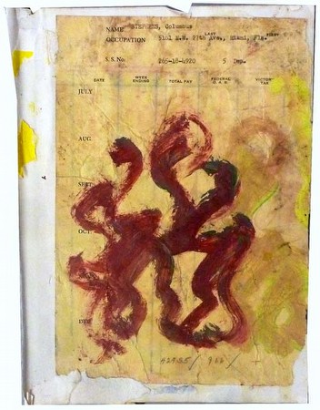 Purvis Young, Untitled, 1990s, Acrylic, collage on reclaimed paper, 9 x 8 in.